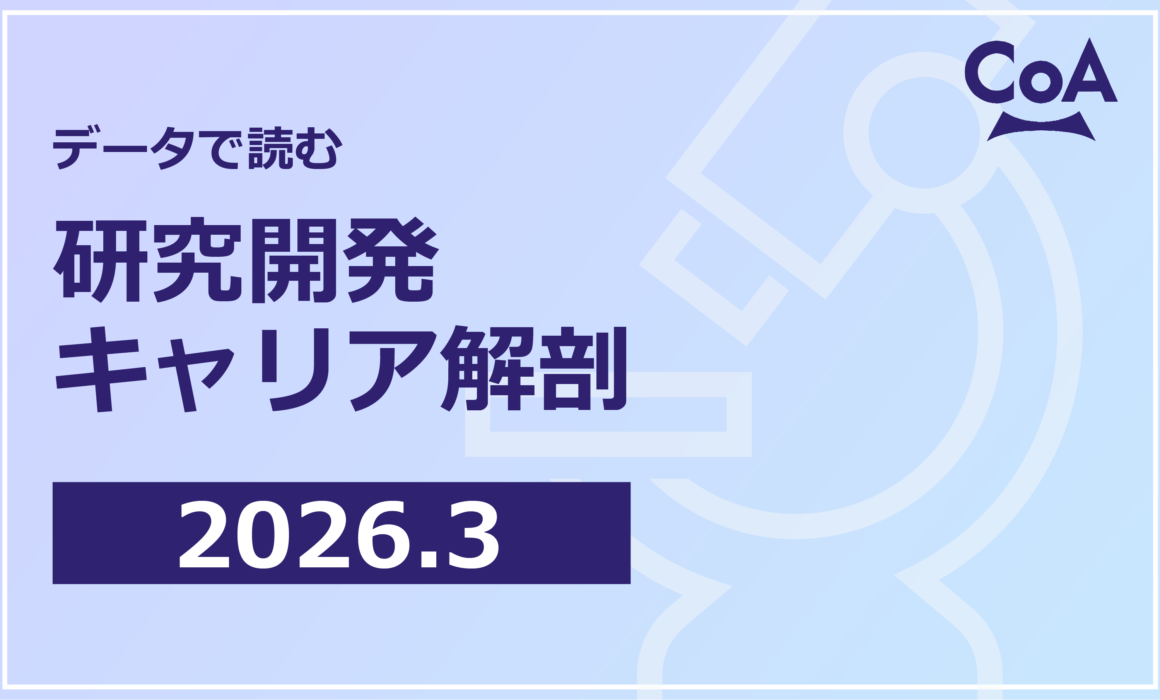 その他 研究開発人材のキャリアを読み解く調査レポート 『データで読む 研究開発キャリア解剖』を公開. 2026年4月17日 CoA Nexus年次調査 データで読む研究開発キャリア解剖 レポートを見る (22.4MB) ‹ › Contents: 1 基本情報 2 研究開発人材のキャリアと報酬の実態 3 研究開発環境の満足度と課題 4 生成AIの活用状況 5 研究開発人材が注目するテーマ・組織 ✕ レポートを閲覧する 閲覧するには、CoA Atlas アカウントが必要です。 該当する項目を選択してください。 研究者の方はこちら アカデミア・企業の研究者向け 研究者以外の方はこちら 企業・採用担当・その他の方向け 既にアカウントをお持ちの方は ログイン 会員登録 以下の情報をご入力いただくと、レポートをご覧いただけます。 姓* 姓を入力してください 名* 名を入力してください 電話番号* 電話番号を入力してください 所属(大学・研究機関・企業名)* 所属名を入力してください レポートの活用目的* あてはまるものを選択してください 採用戦略の検討 研究開発人材の動向把握 組織・制度設計の参考 その他 活用目的を1つ以上選択してください メールアドレス* 有効なメールアドレスを入力してください 登録してレポートを見る キャンセル ご登録ありがとうございます ご登録内容は現在確認中です。 審査結果は2〜3営業日以内にメールでご連絡いたします。 研究者キャリアマーケットレポートは、今すぐご覧いただけます。 レポートを見る 閉じる ✕ by CoA Study Editors